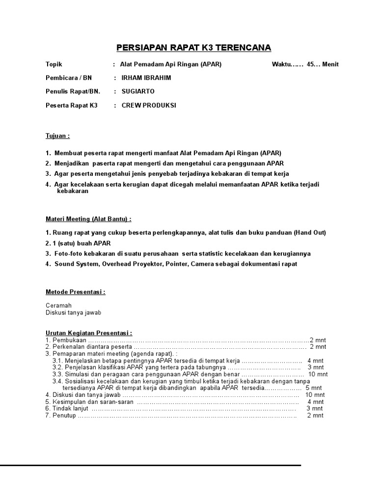Contoh Rapat K3 Apar via www.scribd.com